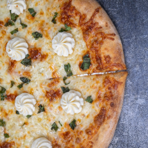 Mozzarella, Ricotta, Hot Honey, Pepperoni, Parmesan, Crushed Red Pepper Flakes